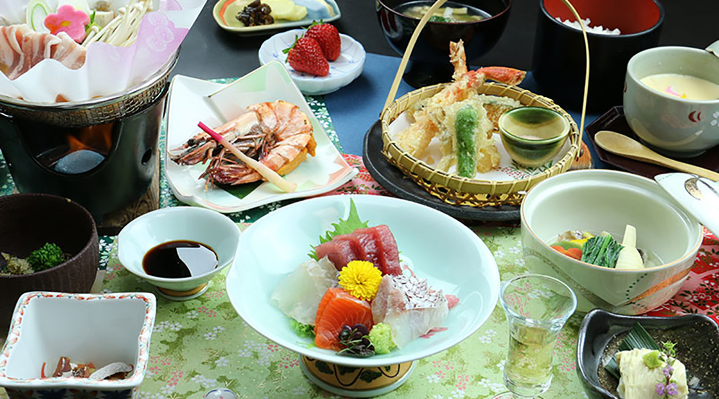 運ばれた膳からは、見た目にも調理場をあずかる人々の美味へのこだわりが伝わってきます。蔵王山麓、仙台湾の恵みをすべて手造りで食膳へ。新鮮な食材を、温かいものは温かいうちに、冷たいものは冷たいうちに召し上がっていただけるよう、時間を考えてお出ししています。そして、3ヶ月でメニューを替えて季節感を取り入れた献立の創作も嬉しいおもてなし。今宵は、美味なる膳とともに、旅の一日をひも解いてみてはいかがですか。
