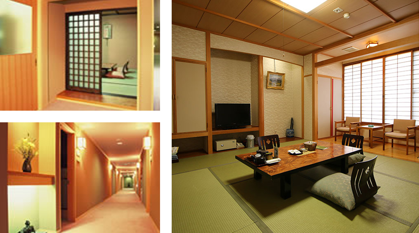 日々の喧噪を忘れて、のんびりとしたいやしの時間を味わえる旅館 源兵衛。館内はバリアフリーで、平屋建てなので安心してお泊りいただけるとともに奥行きが広く、お部屋からは中庭のロケーションをお楽しみいただけます。10畳/5室、12.5畳/6室の和室をご用意しております。夕食はお部屋出しで、朝食は宴会場でお召し上がりください。