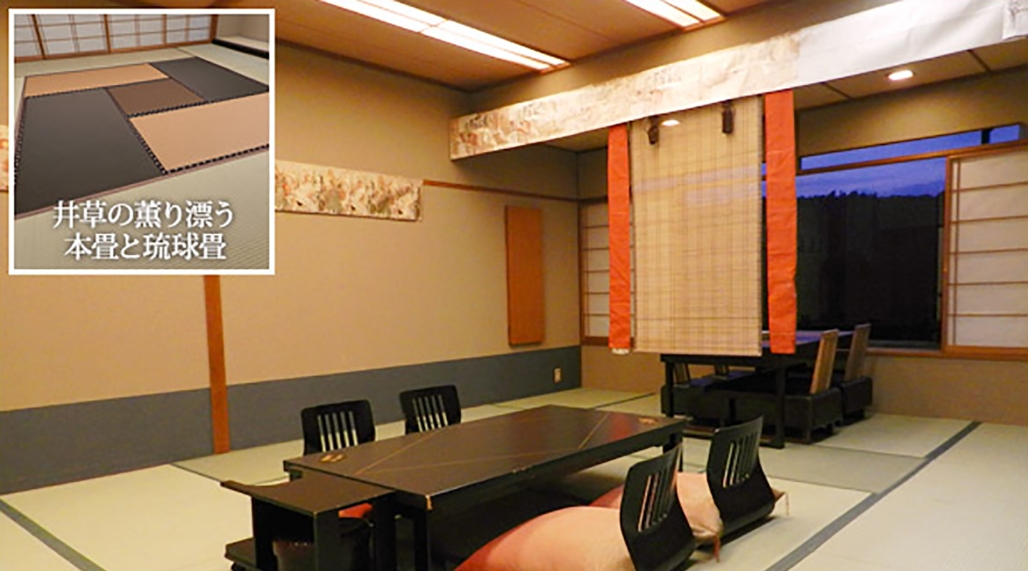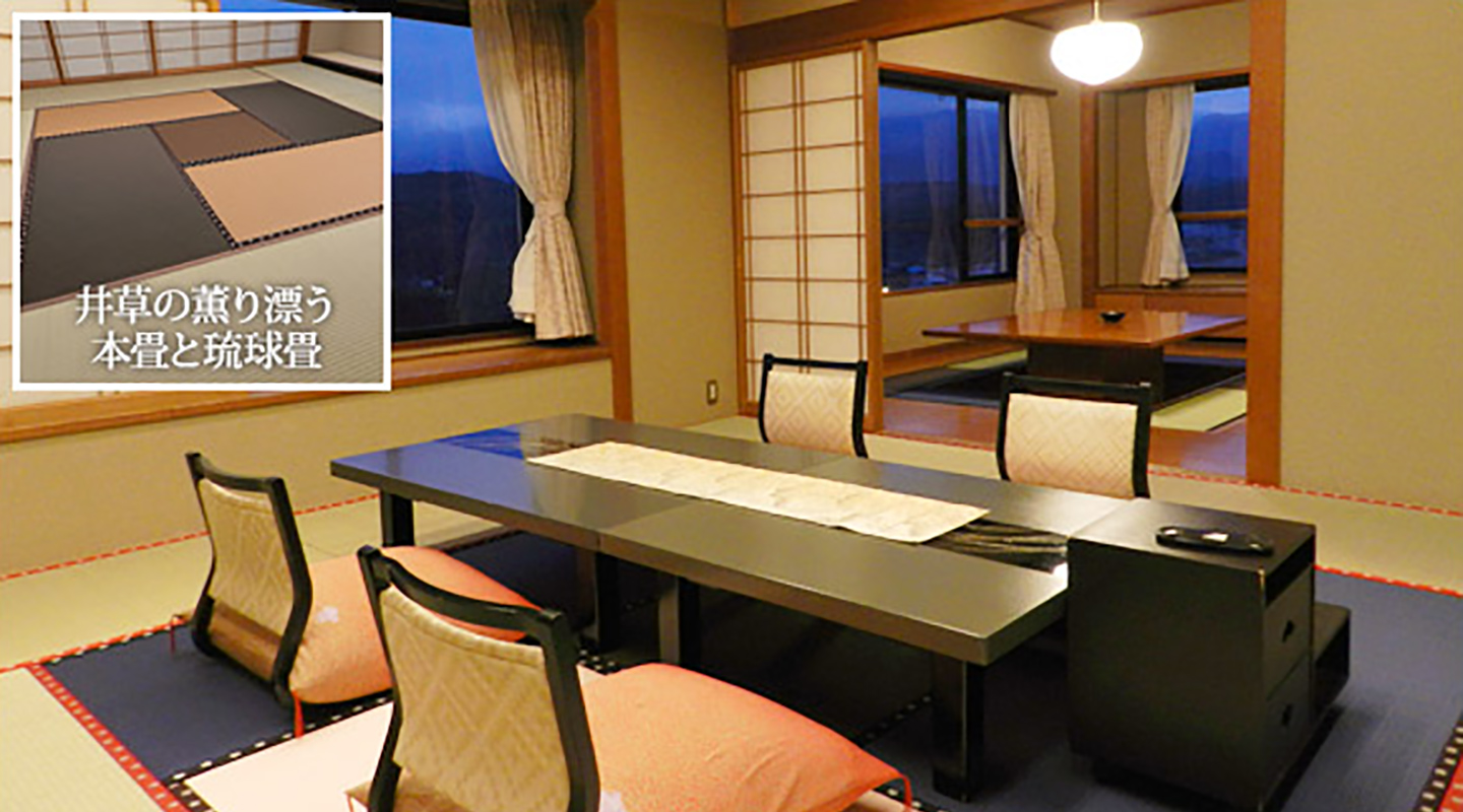 井草の薫りが漂う本格和室。本畳と琉球畳でおくつろぎ下さい。